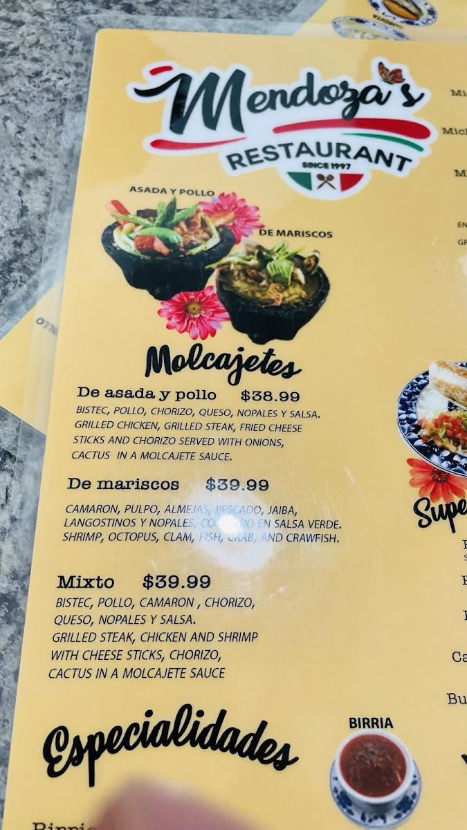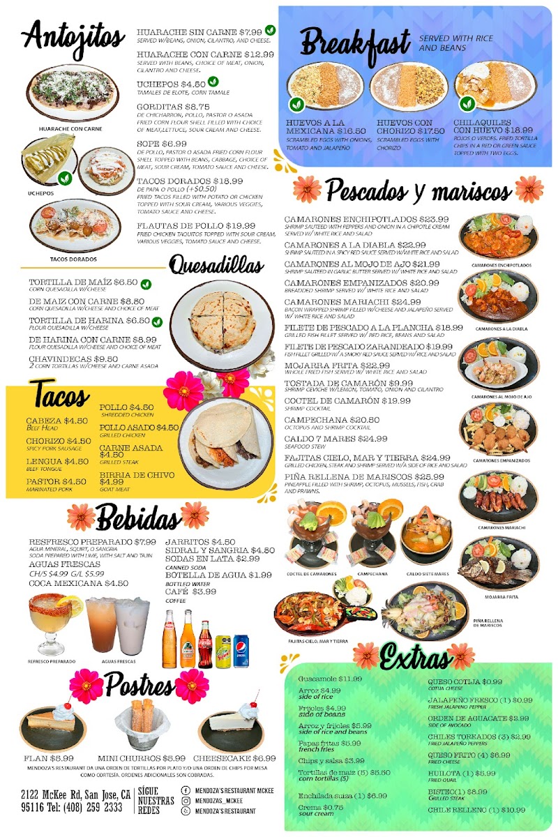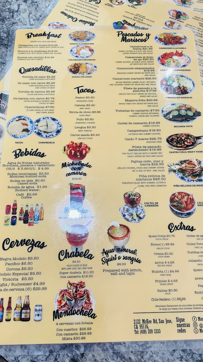 Welcome to Mendoza's Restaurant, a hidden gem of Michoacán cuisine nestled in San Jose. With a vibrant atmosphere, complete with live music and soccer on TV, this place invites you to indulge in rich Mexican flavors. The menu showcases enticing dishes like the Molcajete, brimming with shrimp, octopus, and a medley of spices, making it a standout at $47.99. Bursting burritos, such as the Burrito Mojado, offer a hearty experience starting at $16.99.